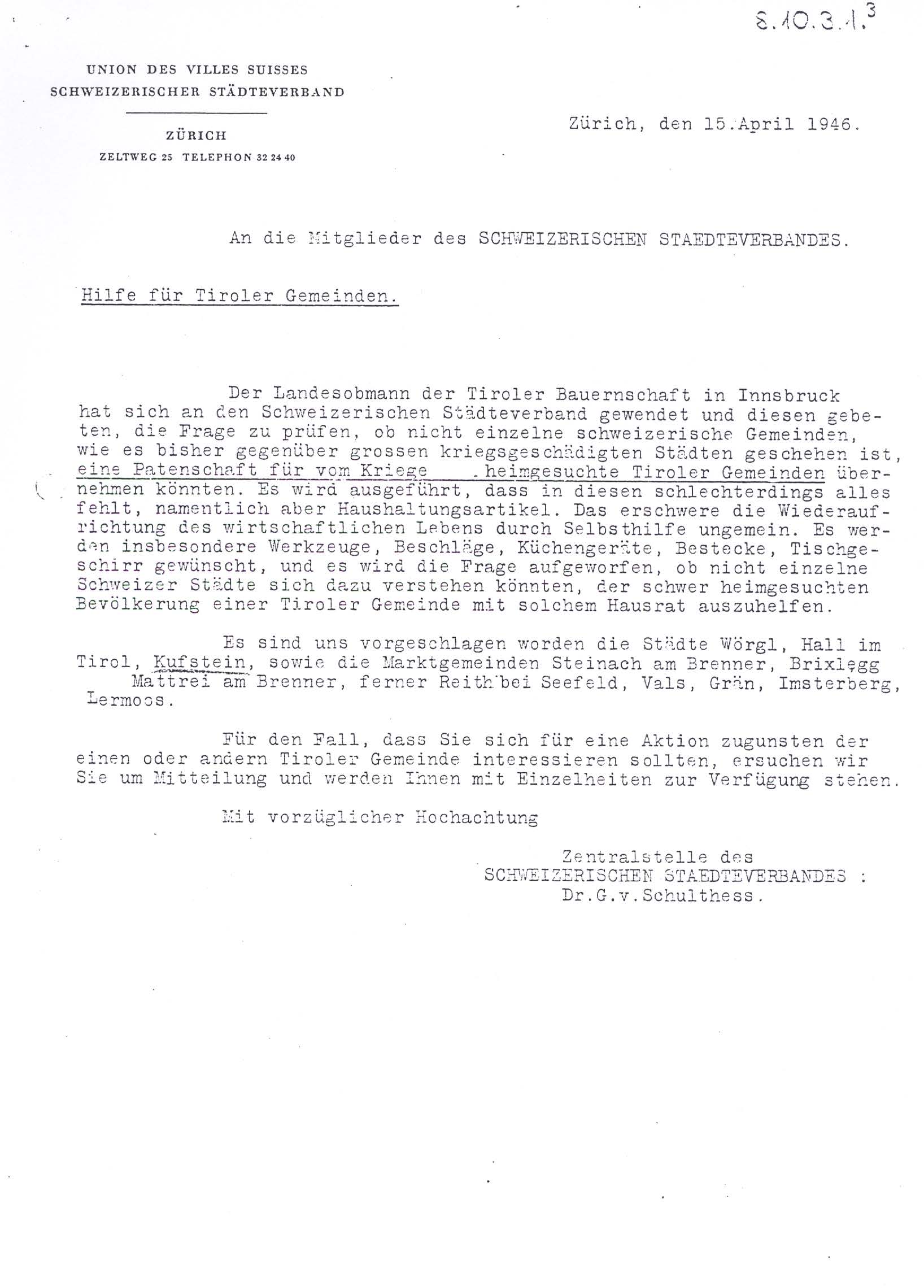 50 Jahre Patenschaft Frauenfeld – Kufstein 1946 – 1949