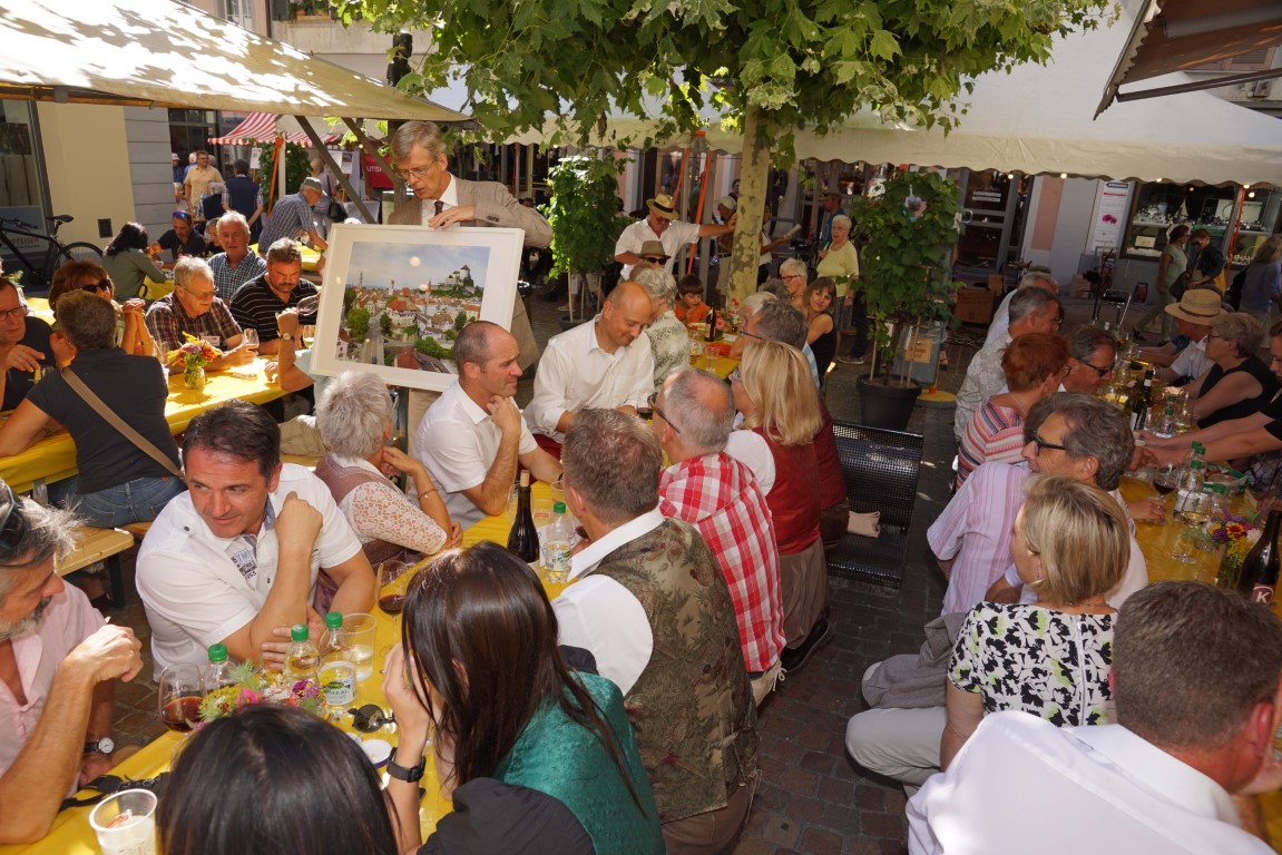 11.00 Uhr Übergabe Geschenkurkunde durch Geschenkübergabe-Delegation im Rathaus mit anschliessendem Mittagessen im Frauenfelder-Stpberl.