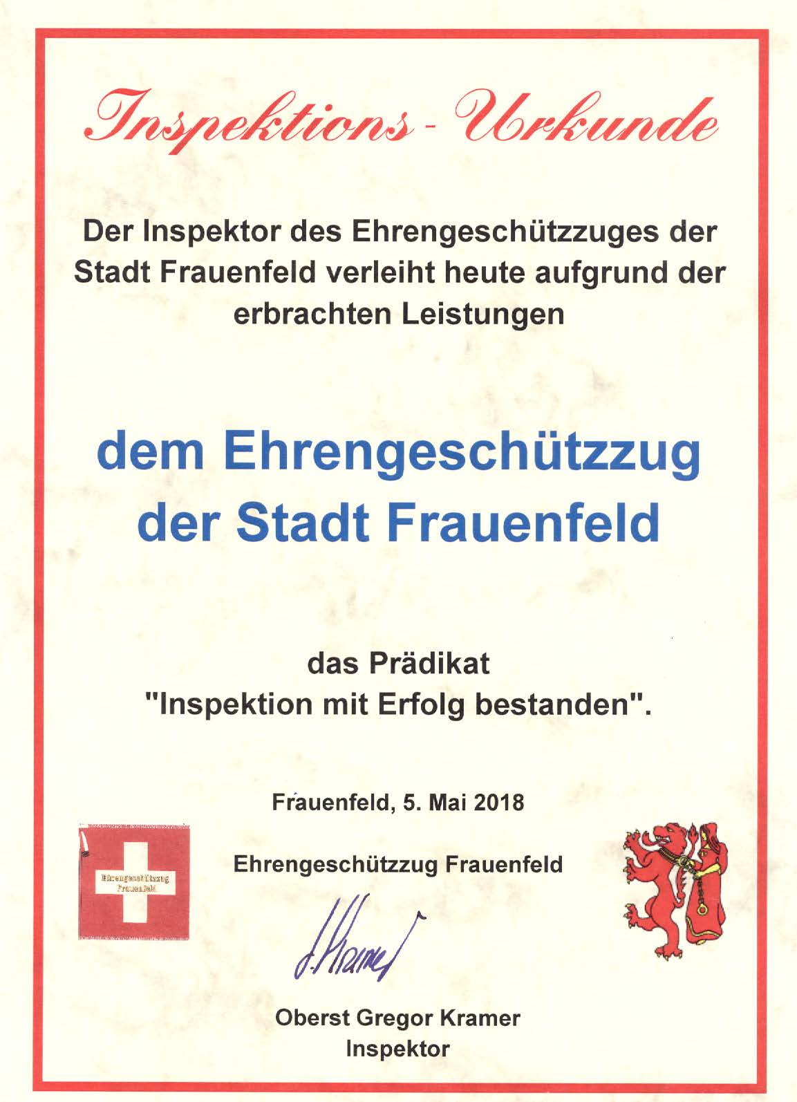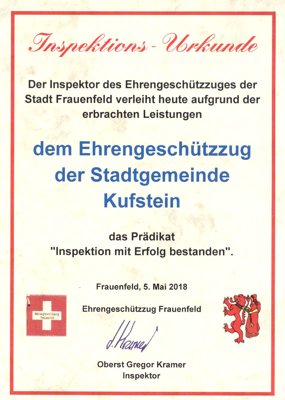 Samstag, 5. Mai 2018, 14.30 Uhr: Inspektion der Ehrengeschützzüge Kufstein und Frauenfeld