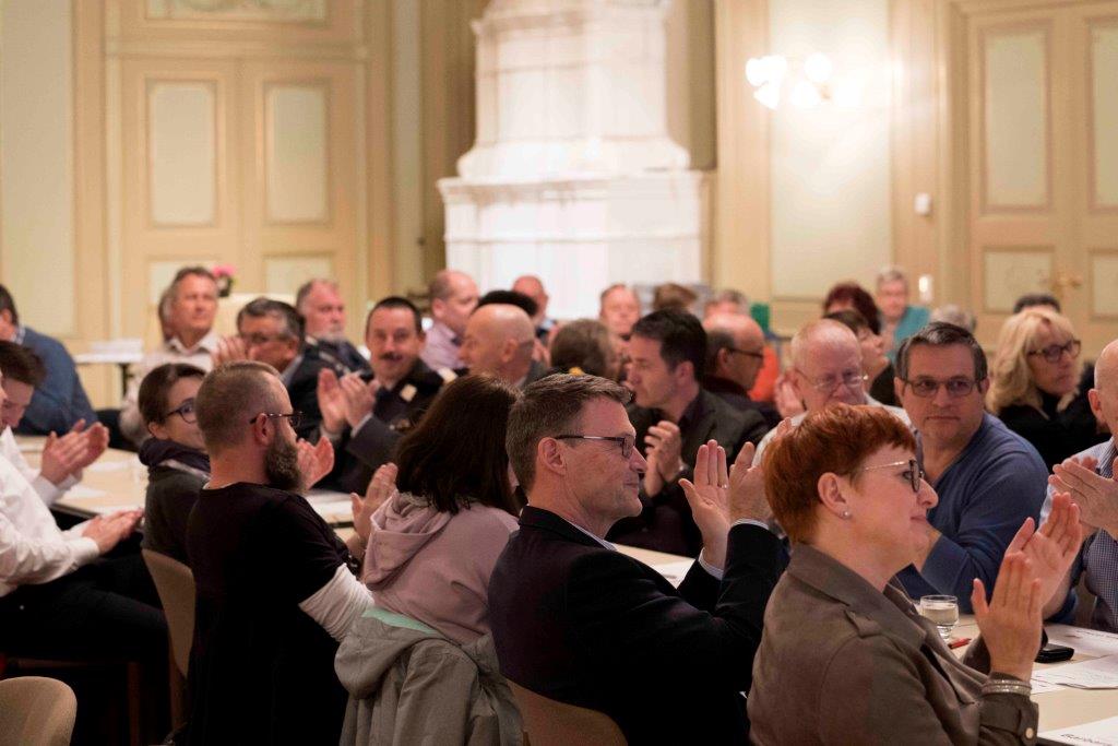 Präsident Kurt F. Sieber durfte um 19.30 Uhr 14 Ehrengäste, darunter die Gemeinderatspräsidentin Barbra Dätwyler Weber, Gemeinderat Romeo Küng, Bürgerpräsident Titus Moser, Waffenplatzkommandant Oberst i Gst Felix Keller, und 58 Mitglieder, Gönner und Sponsoren zur 4. Vereinsversammlung Förderverein Städtepartnerschaft Frauenfeld-Kufstein im grossen Bürgersaal im Rathaus Frauenfeld begrüssen.