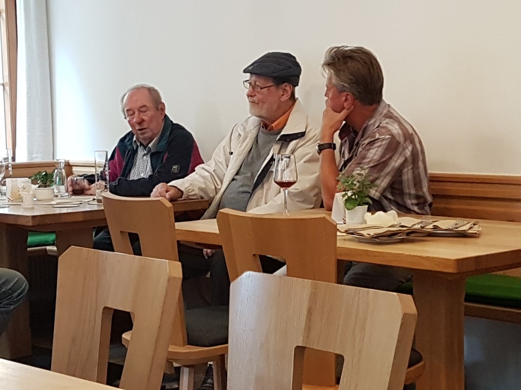 12.00 Uhr Gemeinsames Mittagessen Rest Braustüberl mit Hans Brünoth, Burkhardt Riedmiller, Pepi Daxerer und Reinhard Fischer.