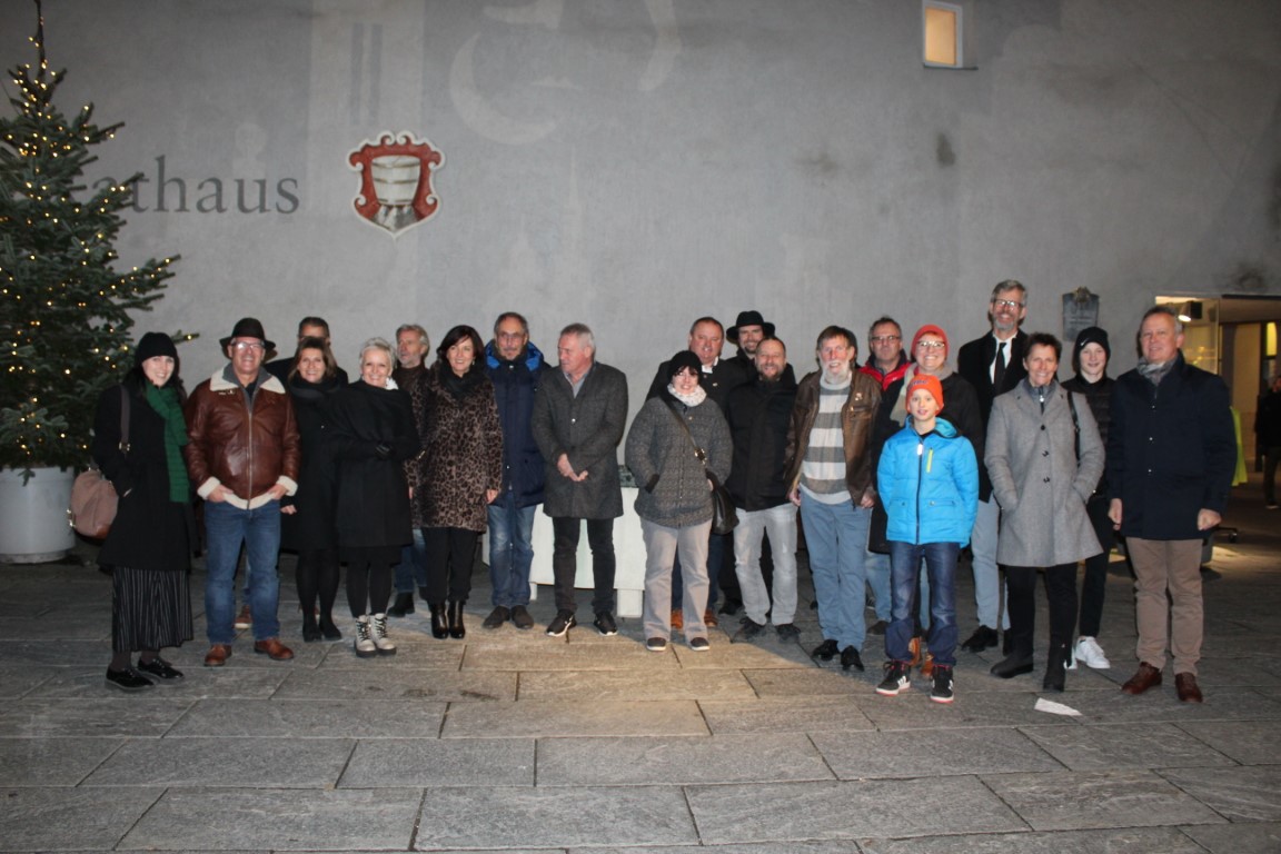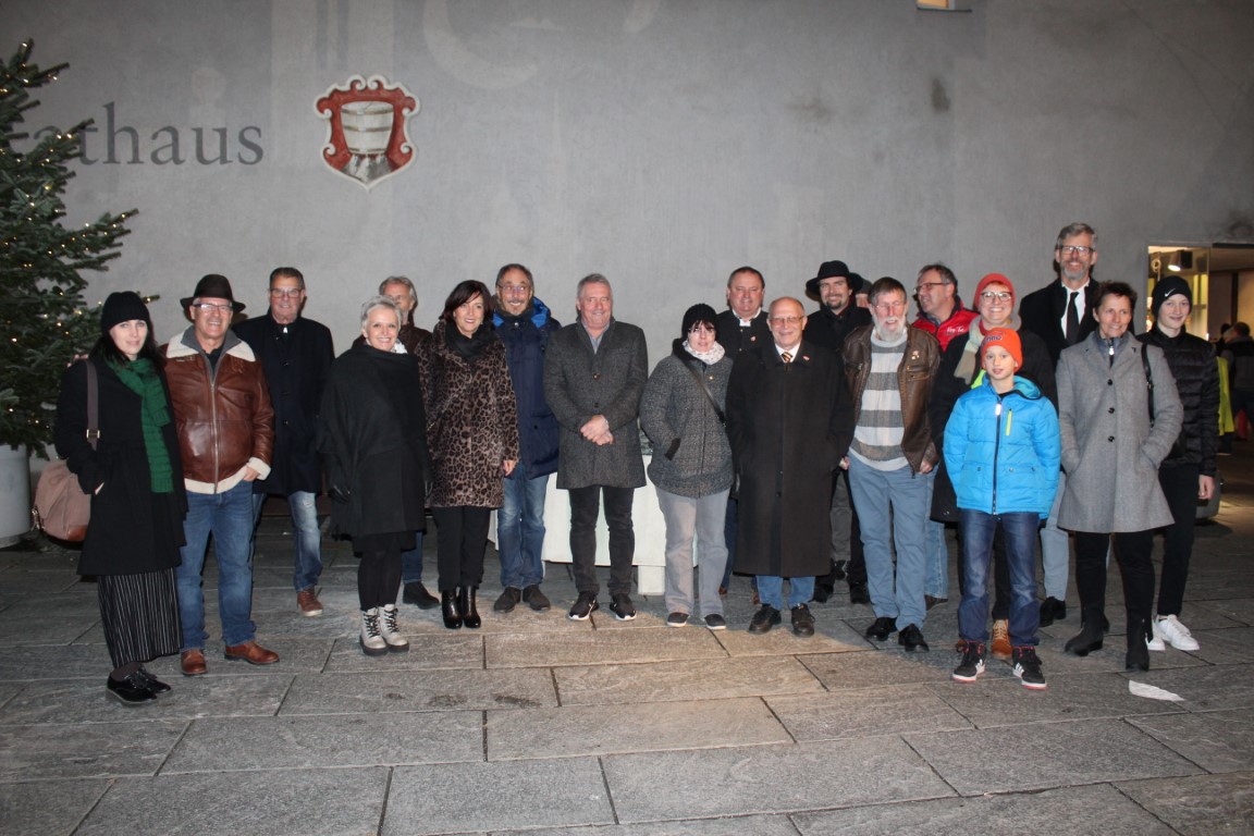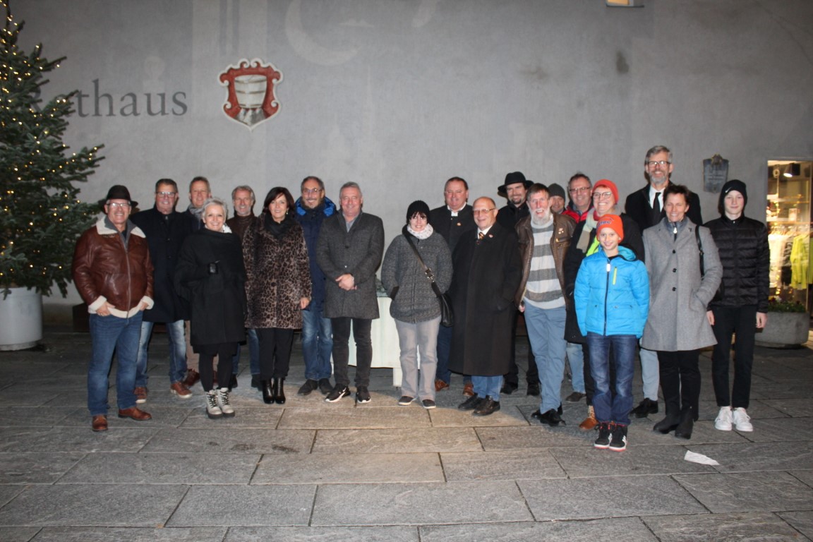 1. Vizebürgermeisterin Brigitta Klein mit Andrew, Gemeinderat Reinhard Amort, Gemeinderätin Birgit Obermüller mit Leonhard, Gemeinderat Manfred Haslacher, Maria Kaindl, Dr. Klaus Reitberger, Gemeinderat Horst Steiner, Hanns Brünoth, Anders Stokholm mit Vera, Barbara Dätwyler Weber mit Adrian, Sämi und Max, Heinz Egli, Priska und Stephan Weber, Kurt F. Sieber.