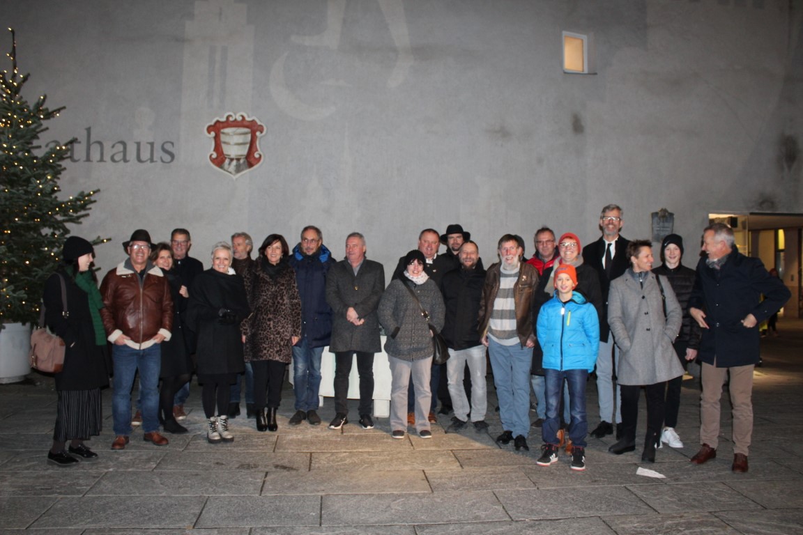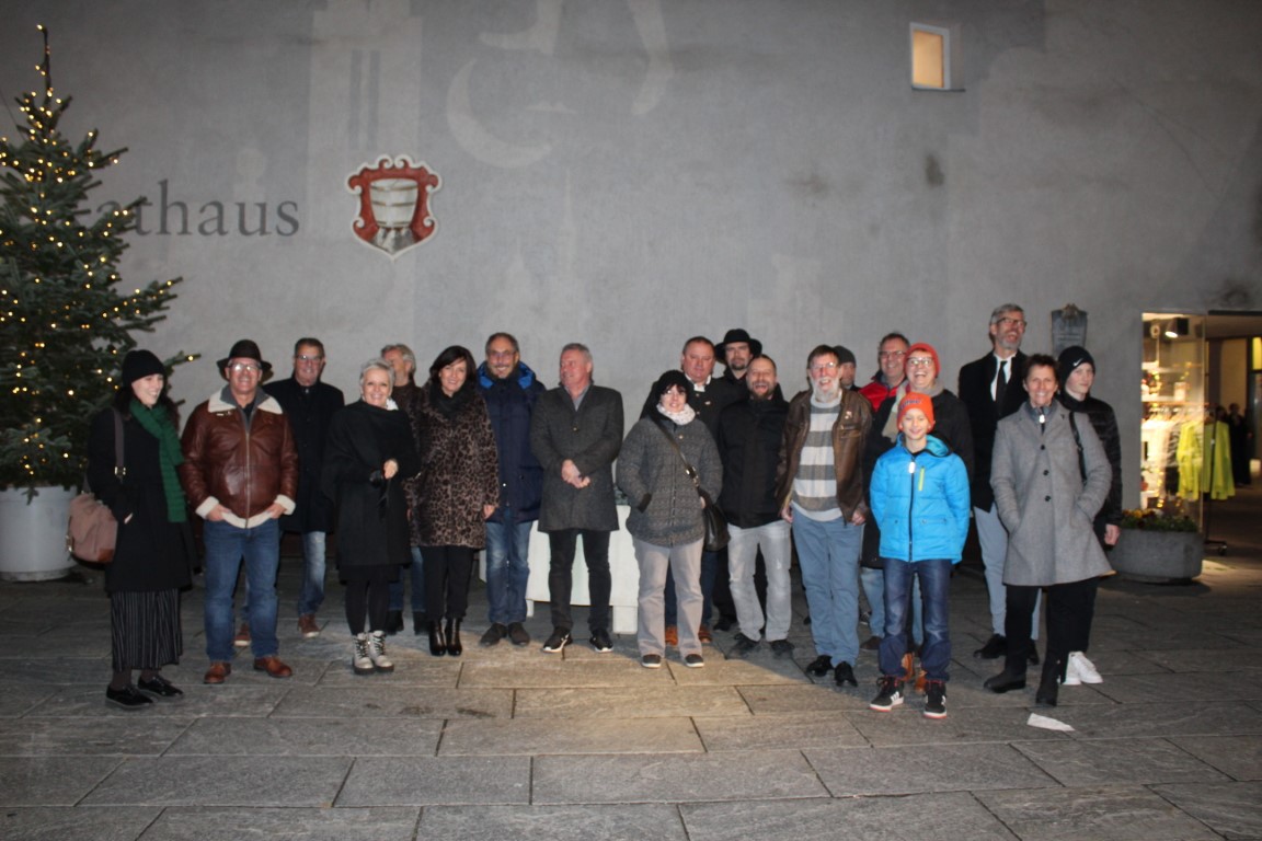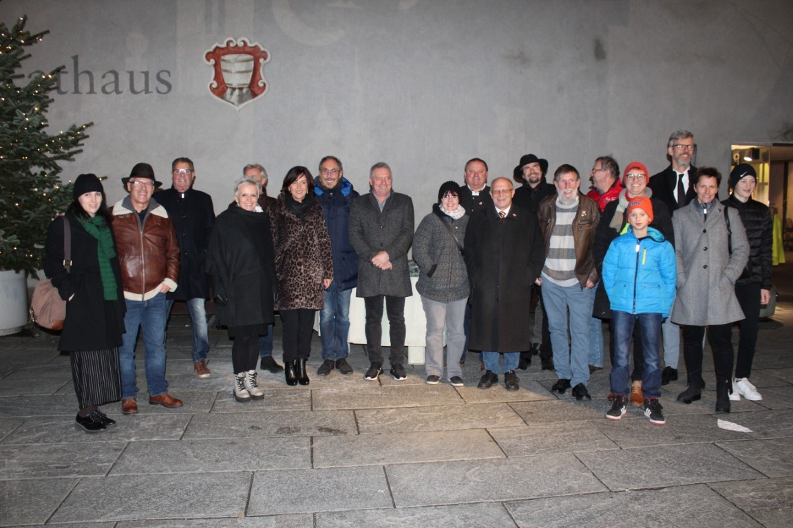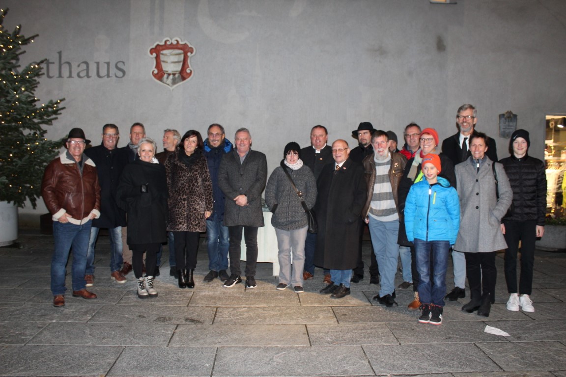 1. Vizebürgermeisterin Brigitta Klein mit Andrew, Gemeinderat Reinhard Amort, Gemeinderätin Birgit Obermüller mit Leonhard, Gemeinderat Manfred Haslacher, Maria Kaindl, Dr. Klaus Reitberger, Gemeinderat Horst Steiner, Hanns Brünoth, Anders Stokholm mit Vera, Barbara Dätwyler Weber mit Adrian, Sämi und Max, Heinz Egli, Priska und Stephan Weber, Kurt F. Sieber.